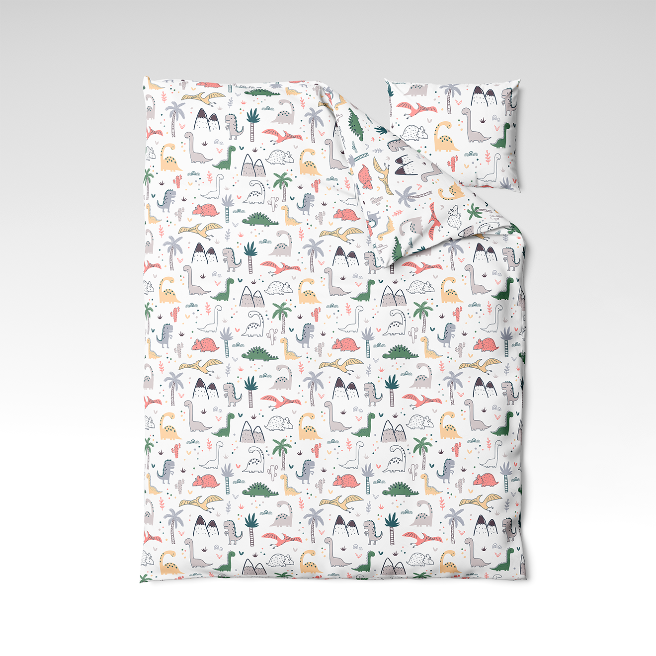 Ręcznie szyty bawełniany komplet pościeli | Dino Land