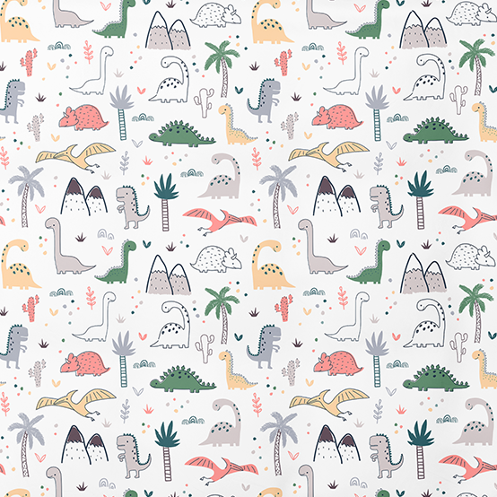 🦕 Dino Land – zabawny design z kolorowymi dinozaurami, które zapraszają w podróż pełną snów. Doskonale pasuje do dekoracji pokoju dziecięcego i emanuje ciepłem oraz radością.