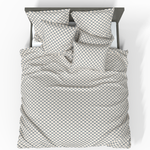 Ten Deluxe satynowy bawełniany poszewka na poduszkę z geometrycznymi wzorami odzwierciedla elegancję i nowoczesność. Jasne odcienie z ciemnymi akcentami tworzą zrównoważone i stylowe wnętrze, nadając Twojej sypialni wyjątkowy urok.