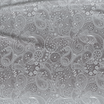 Ta Deluxe satynowa bawełniana prześcieradło z gumką, inspirowana miastem Jaipur, wyróżnia się eleganckimi i unikalnymi wzorem paisley, które nadają wnętrzu wyjątkowego uroku. Połączenie szarości i bieli tworzy spokój i harmonię w Twojej sypialni, pozwalając Ci zanurzyć się w głęboki i komfortowy sen.