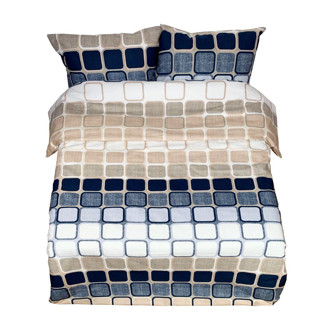 🟦 Grid – nowoczesna i harmonijna bawełniana tkanina o kompozycji kwadratowych wzorów z subtelnymi przejściami kolorów. Kremowe, piaskowe i ciemnoniebieskie odcienie tworzą wizualną równowagę i poczucie struktury. Idealna do różnych projektów tekstylnych – od pościeli po dekoracyjne detale dla tych, którzy cenią porządek i nowoczesny styl.