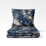 🌙 Midnight Garden – gęsty, ciemnoniebieski bawełniany materiał z delikatnym kwiatowym wzorem. Idealny dla tych, którzy szukają subtelnej elegancji i wyjątkowego designu we wnętrzu.