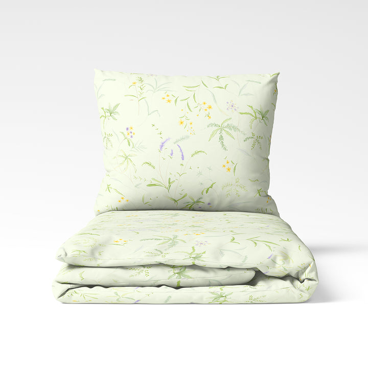 🌿 Meadow Whisper – ein sanfter Steppbettbezug, verziert mit Motiven einer blühenden Wiese. Der helle Grünton und feine Blumenkonturen vermitteln ein Gefühl von Reinheit und Naturnähe.
