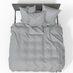 🌧️ "Drizzle" - a soft pale gray shade inspired by calm clouds and rainy mood. The striped satin pattern gives the fabric movement and depth, while cotton guarantees a soft touch and excellent breathability.