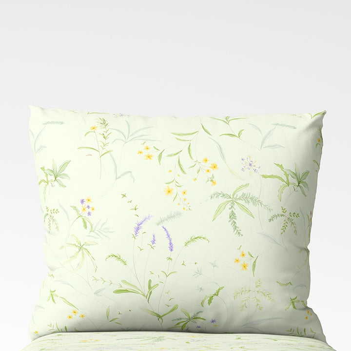 🌿 Meadow Whisper – a light pillowcase featuring a meadow plant pattern. Soft pastel colors and a natural composition create a sense of calm, perfect for a bright, cozy bedroom.