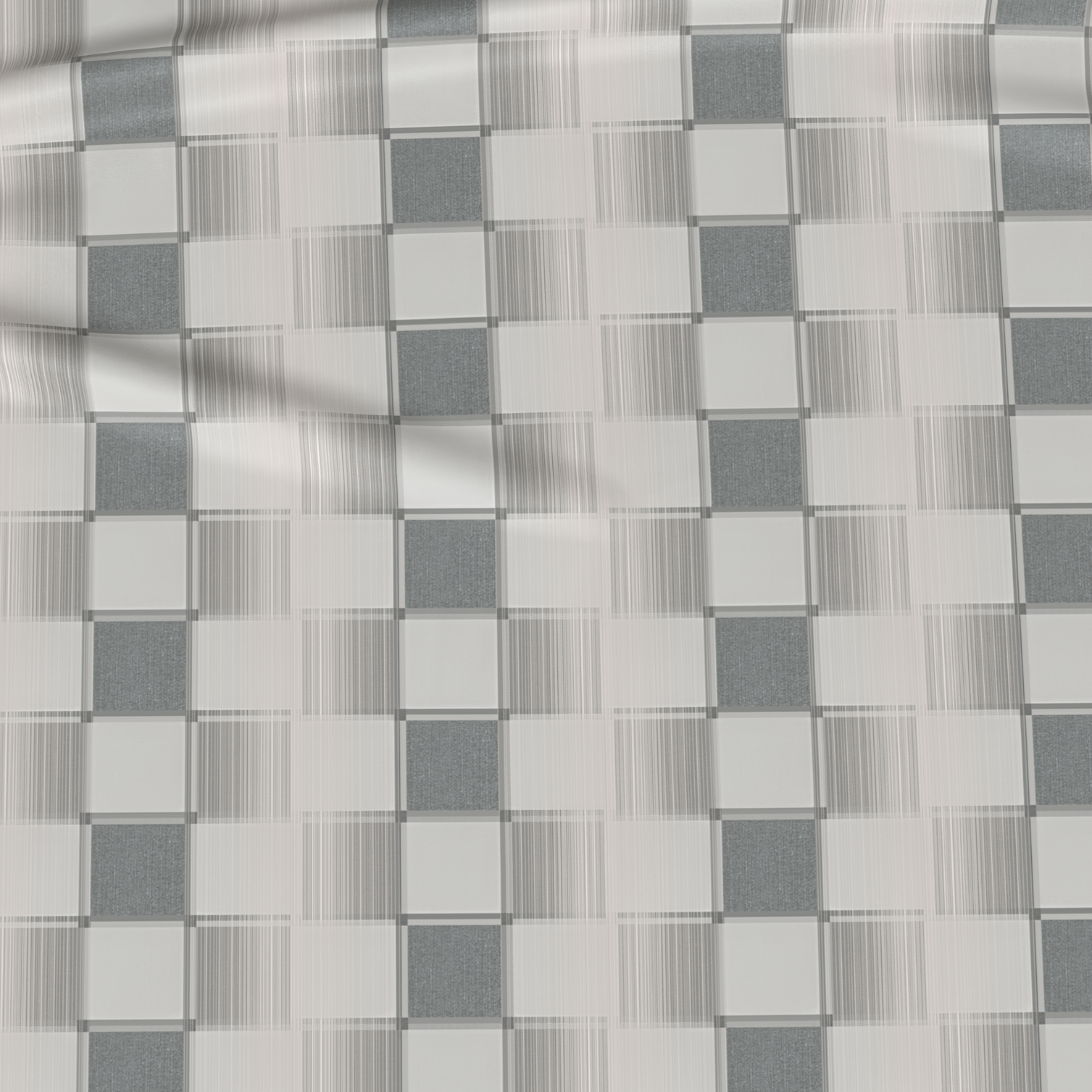 Minimalistyczny design inspirowany szachownicą, łączący odcienie piaskowego i szarego, doskonale uzupełni nowoczesną lub industrialną sypialnię.